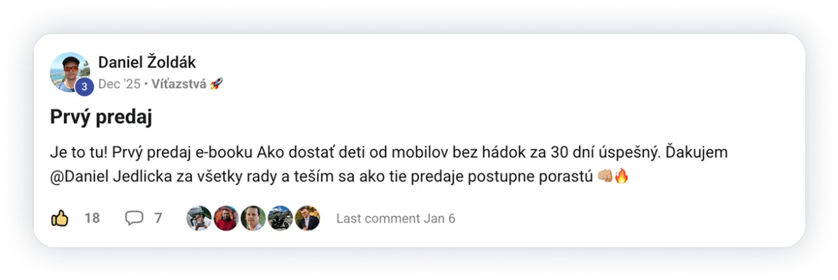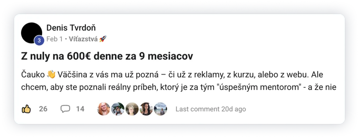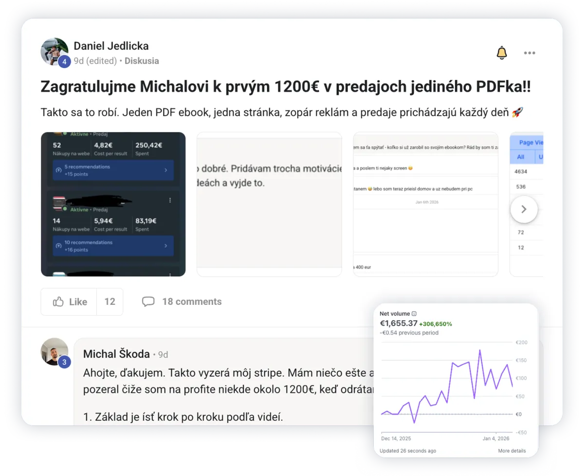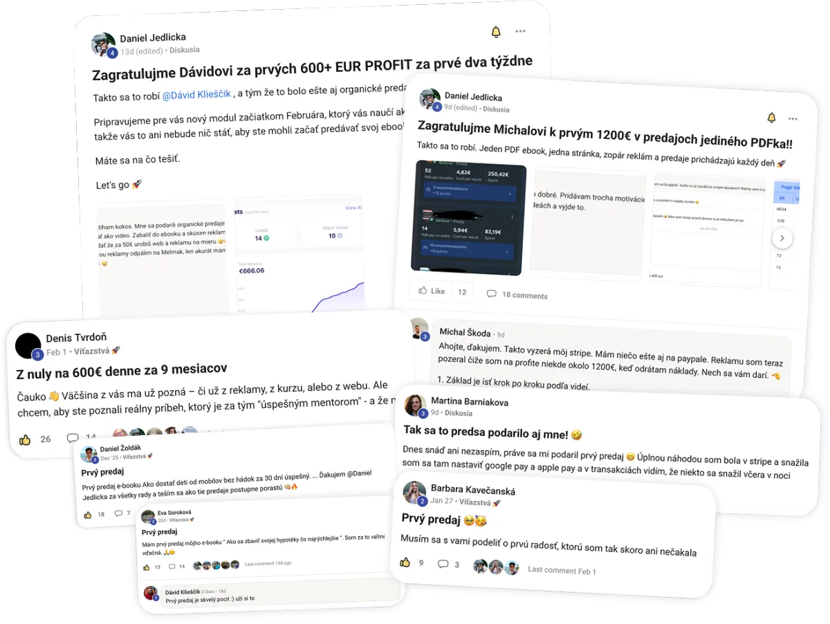Žiadny háčik. Na rozdiel od iných kurzov, ktoré stoja stovky či tisíce eur, som cenu nechal nízku z jedného dôvodu — chcem, aby sa k tomuto biznisu dostalo čo najviac ľudí.