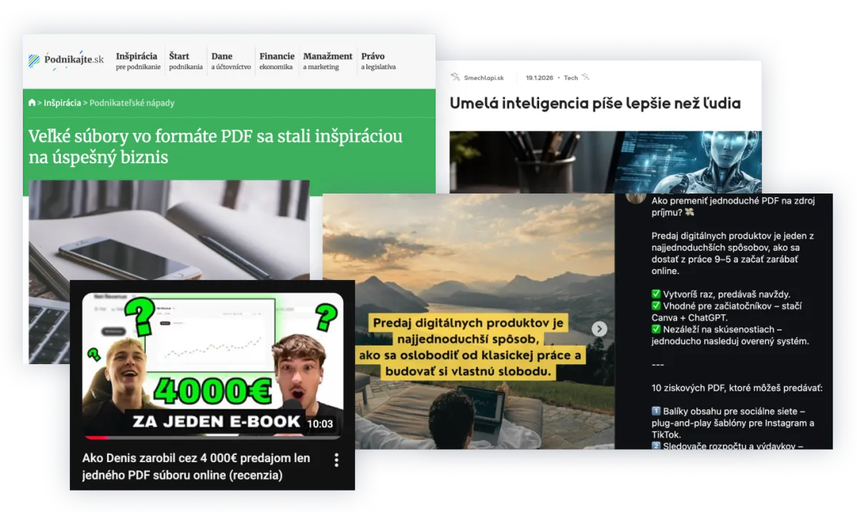 Do 24–48 hodín uvidíš, či sa tvoj PDF predáva, takže nemíňaš stovky eur na neúspešné produkty ako pri dropshippingu či iných modeloch.